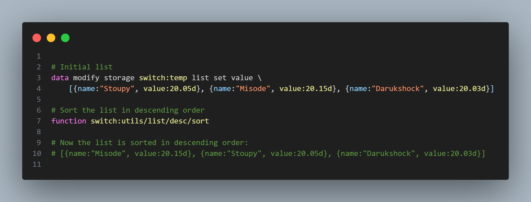 The datapack.sorters plugin generates efficient sorting functions for Minecraft datapacks.